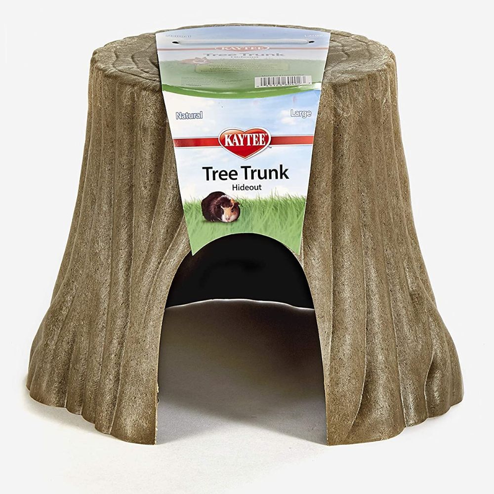 Introducing the Kaytee Natural Tree Trunk Habitat Hideout! Whether you're a wild guinea pig running around in the wilderness or one tucked away in your cozy home, this hideout is perfect for both! The tree trunk's shape is designed to satisfy your guinea pig's natural instinct to hide and it's made from durable wood and plastic composite that will last for years. With its realistic look, you get the feeling like a real old tree stump has been transplanted right into your home. Plus, it doubles as comfortable and safe resting spot! So why not bring the great outdoors inside and make your home one wild adventure? Get your Kaytee Natural Tree Trunk Habitat Hideout today!