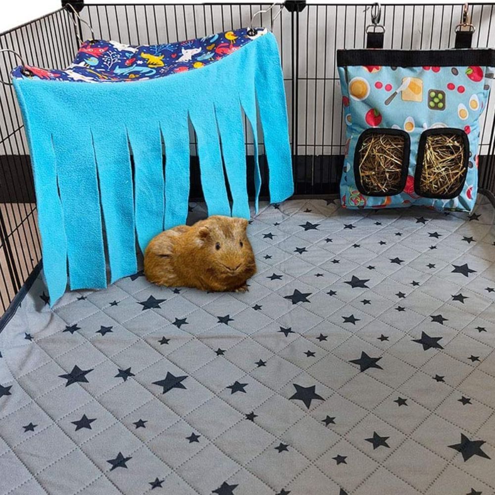 RIOUSSI Guinea Pig Hideout Hideaway Corner Fleece Toys Cage Accessories with Reversible Sides, Bluecat/Gray+Blue x 1 Curtain