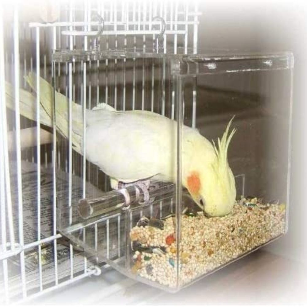 If you're looking for a bird feeder that'll attract small birds like canaries or lovebirds, then the Tidy Seed size might just be the ticket. The built-in perch means you won't have to worry about assembling anything - it's ready to go straight out of the box. Plus, you've got the option to attach it either inside or outside the cage, giving you more flexibility depending on your needs. Made from highly durable acrylic, this feeder is not only practical, but crystal clear - so you'll get a great look at your feathered friends chomping away on their snacks. Can we get a round of applause for the ultimate definition of chic and functional?