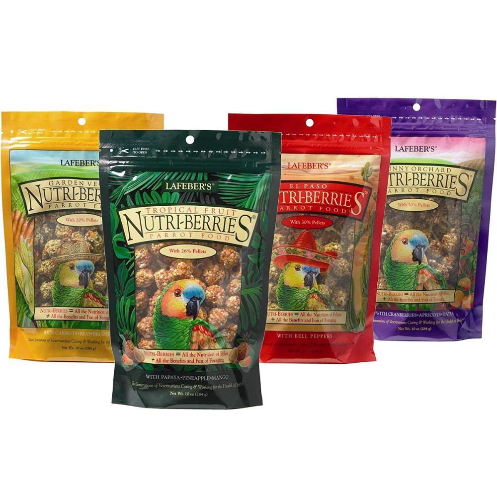 LAFEBER'S Gourmet Nutri-Berries Pet Bird Food Variety Sampler Bundles, Made with Non-GMO and Human-Grade Ingredients, for Parrots, 10 oz. Each (4 Pk Bundle)