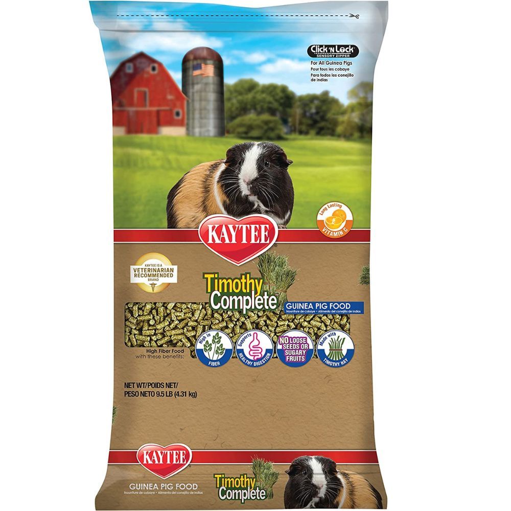 Kaytee is at the heart of every healthy feeding routine. Kaytee Timothy Complete Guinea Pig Pet Food is a high-quality pet food that is veterinarian recommended. The ingredients are carefully hand selected to provide your guinea pig with the best nutrition possible for long and healthy life. The all-in-one pellets contain no loose seeds or sugary fruits, making it easier to ensure your pet receives equal nutrition in every bite. Plus, the food contains long-lasting Vitamin C to give your pet a boost of immunity and promote dental health through natural chewing activity. However, this product is not suitable for human consumption.