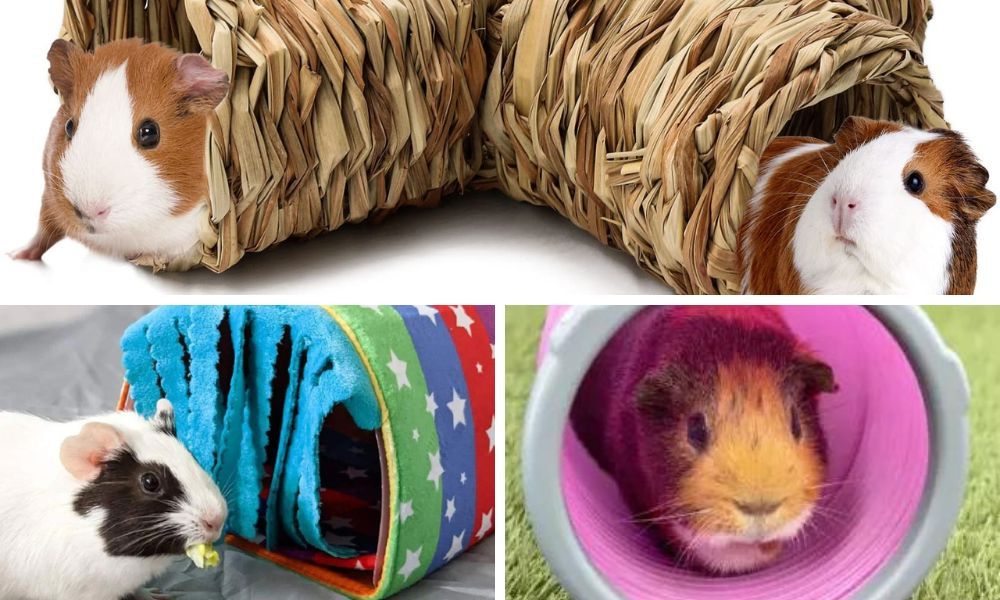 Hiding is a natural behavior for guinea pigs, and providing hideouts in their cage is essential. These can range from simple cardboard boxes to more elaborate wooden or grass huts. Tunnels also offer a fun way for guinea pigs to hide and explore, simulating their natural environment.