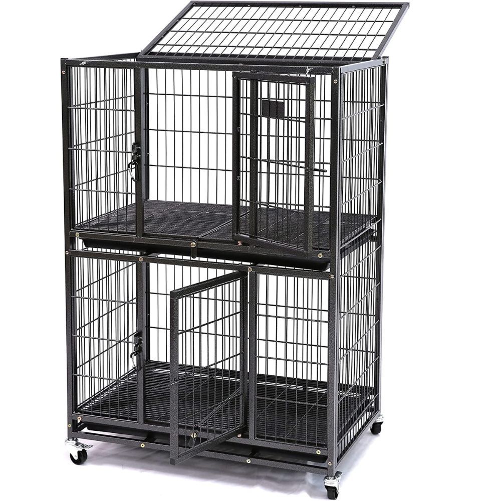 Homey Pet-43 All Metal Open Top Stackable Heavy Duty Cage(Upper) w/Floor Grid, Tray, Divider, and Feeding Bowl