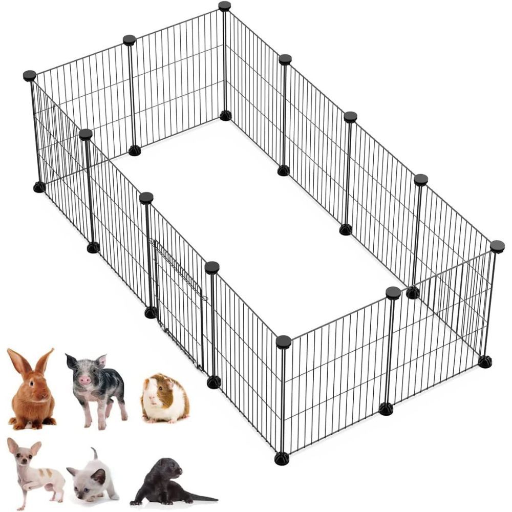 C&AHOME Pet Playpen, Small Animals Supplies, 16 Panels Exercise Playpens Cage, C Grids Portable Yard Fence Indoor, Ideal for Guinea Pigs, Pet Products, DIY Metal Yard Fence, 12" × 15" Black UPPM3416B