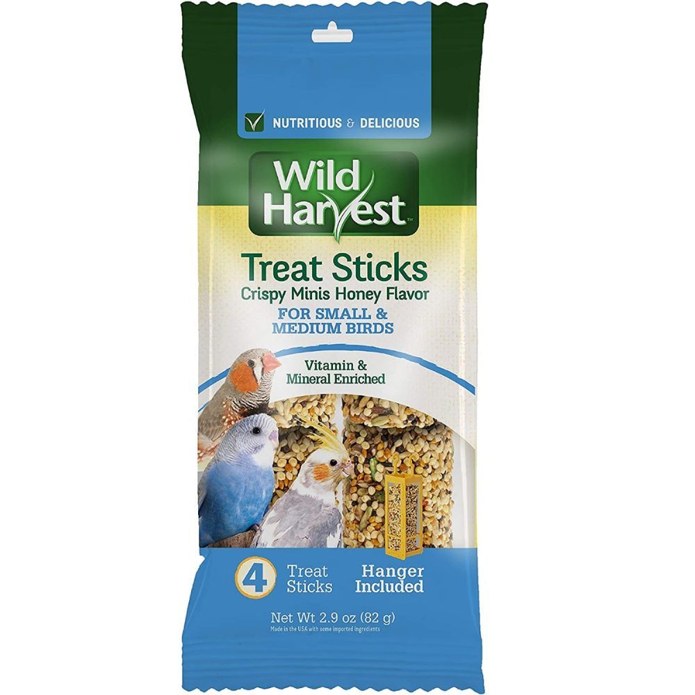 Wild Harvest Treat Sticks Crispy Minis Honey Flavor 4 Count, Hanger Included, Parakeet Food