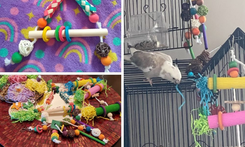 There are various toys that you can give your cockatiel to keep them entertained. Cardboard is a popular material for creating engaging and chewable toys for cockatiels. Wooden toys, mirrors, bird stands, crinkle paper and foraging toys are popular among cockatiel owners. It’s important to offer a variety of toys so your bird can engage in different activities and prevent boredom. You can use colourful wooden slats to build new toys or revamp current ones. Cotton rope is also popular, but some cockatiels just don’t get the memo that you’re not supposed to eat it. If your bird likes to chew on rope toys, they should be removed from the enclosure to avoid causing gastrointestinal issues.